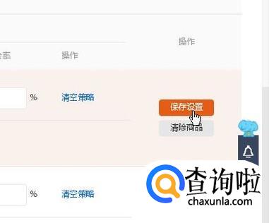 佣金设置完成后,鼠标放在右侧,即时弹出一个按钮“保存设置”按钮,鼠标点击此按钮。