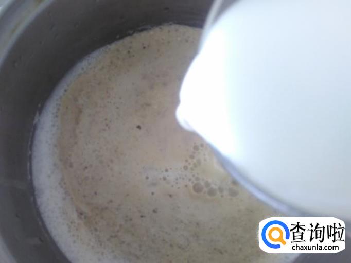 煮沸后加入鲜奶再从新煮沸。
