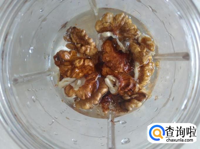 核桃放进打浆机加1杯水打成浆。