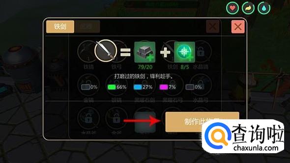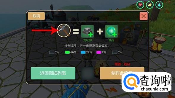 创造与魔法这款游戏类似于之前很火热的我的世界,玩家可以在游戏世界中采集各种各样的物品来搭建自己的房屋,当然同MC一样,工具质量越好采集速度越快,那么在创造与魔法中如何制作铁制品工具呢?