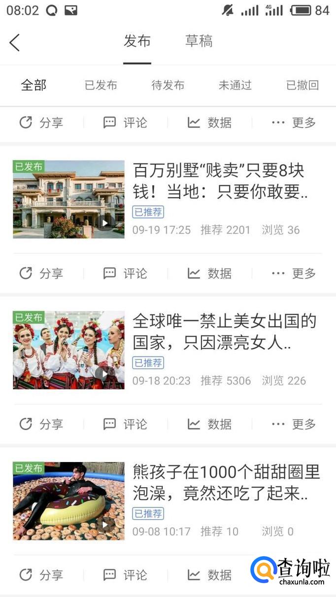 点击内容管理,我们可以看到进入的新界面里可以收看你所发布的文章,视频等内容。而且底下也有每天发布的日期,你所在的领域以及本篇文章的一个阅读量的情况。