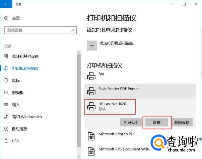然后我们点击打开我们连接的打印机,之后点击管理;