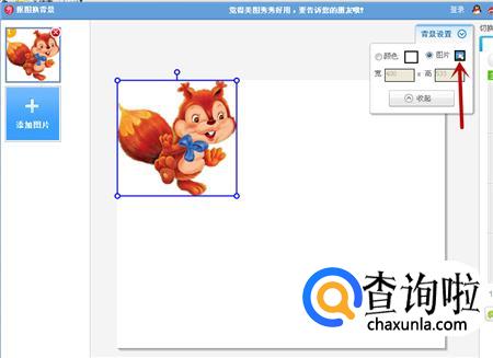在背景设置中,点击图片右侧的小方块,从电脑中选择刚刚保存好的白色图片,这时松鼠的背景就变成白色了。