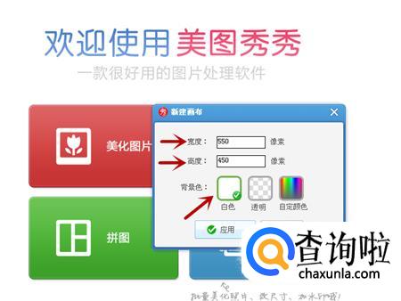 在新建画布中,选择自己想要的宽度和高度,背景色选择白色,然后点击下面的应用。