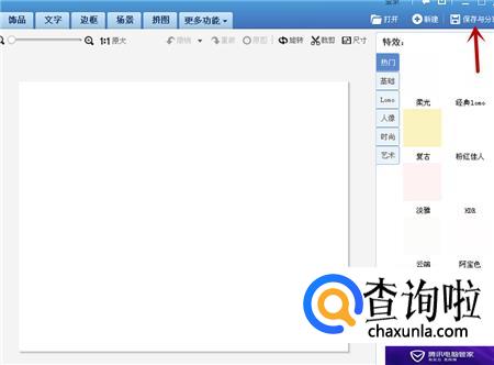 这时,美图秀秀中就出现了一张白色的画布,然后点击右上方的保存,将白色图片保存在电脑中。