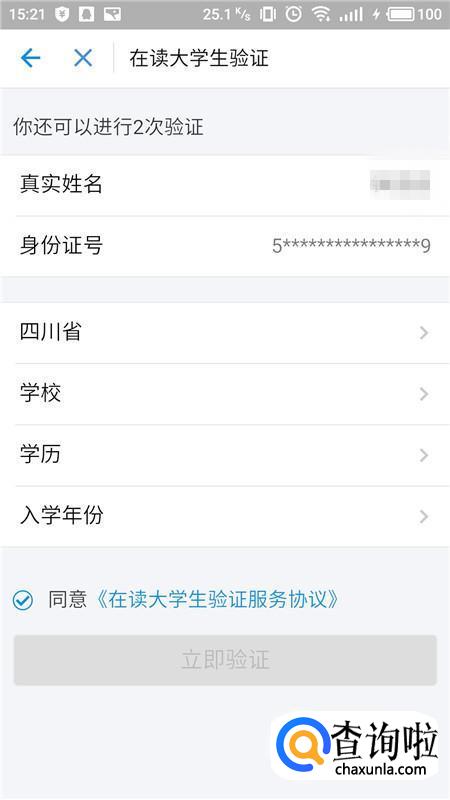 输入相关的学生信息,点击“立即验证”即可完成操作。