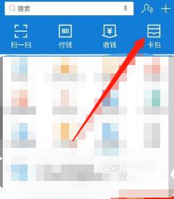打开支付宝,在首页点击箭头所指“卡包”,随后往下翻找到并点击“15元淘宝购物红包”。