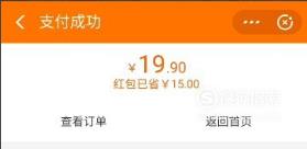 支付成功界面我们能看到红包已省15元。