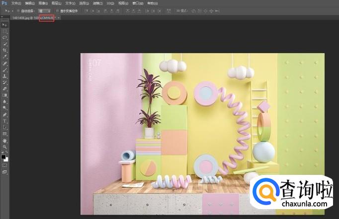 首先我们将图片导入到PS当中,导入之后就可以在PS中查看该图片是RGB模式还是CMYK模式,如图所示。