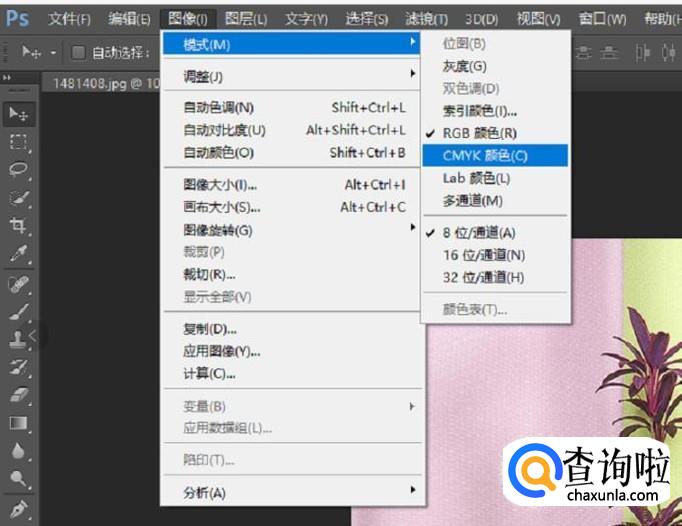 然后点击模式,在模式中选择CMYK就可以了,如图所示。