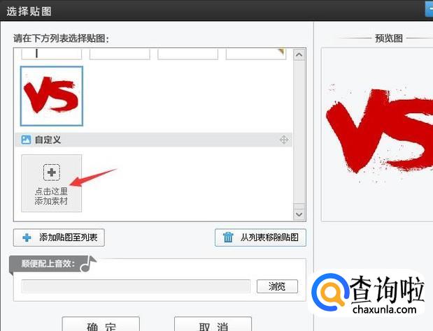 把页面往下拉选择“自定义”添加你准备好的图片/照片,添加好后点击“确定”按钮。