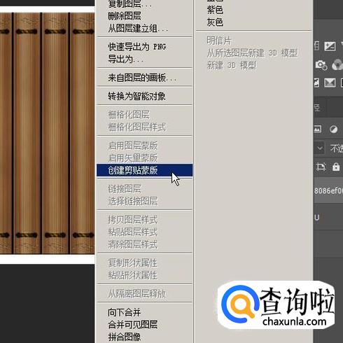 鼠标再移到图层面板这里,右击图片层,弹出菜单再点:创建剪切蒙版