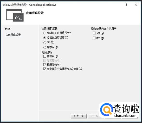 接下来在弹出的界面中选择控制台程序类型,如下图所示