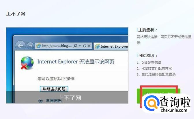 如果网络图标出现感叹号无法上网,可以用电脑管家中的上网工具,对网络进行修复;也可以点击左下角的开始,再点击控制面板,接着点击网络和Internet,再点击网络和共享中心,然后点击无线网络,再点击诊断,系统会自动诊断并且解决问题。
