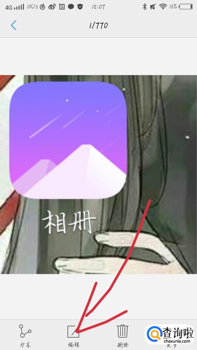 点击屏幕中间,会出现一个新的界面,如图1所示。点击“编辑”选项,如图2箭头所示。