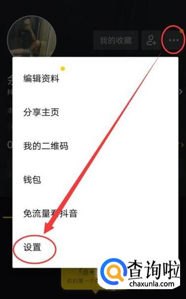 进入之后,在“我”页面,点击图示位置打开一个菜单,然后点击“设置”,进入下一页面。
