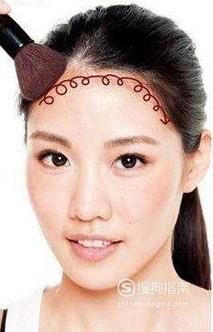 一个人的脸比较大的话主要在于额头的发际线,在靠近头发的发根处都涂抹一些粉扑,这样子就可以降低头发的发际线,脸部就显得会小一些。