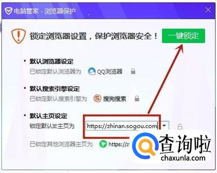 接着输入我们想要的主页网址,并点击一键锁定就可以了。
