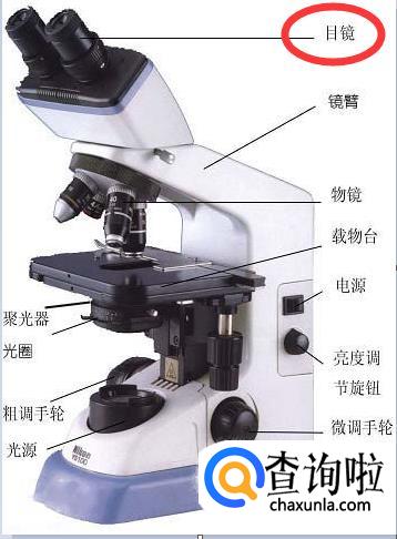 装在镜筒的上端,通常备有2-3个,上面刻有5×、10×或15×符号以表示其放大倍数,一般装的是10×的目镜。