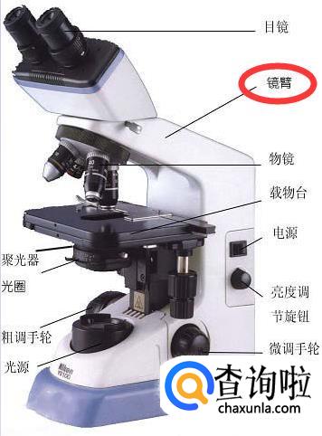 一端连于镜柱,一端连于镜筒,是取放显微镜时手握部位。