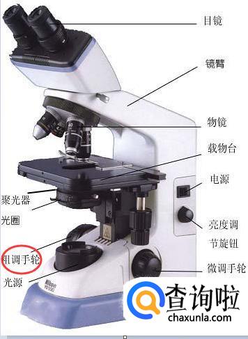 大螺旋称粗调节器,移动时可使镜台作快速和较大幅度的升降,所以能迅速调节物镜和标本之间的距离使物象呈现于视野中,通常在使用低倍镜时,先用粗调节器迅速找到物象。