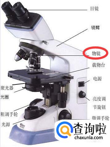 装在镜筒下端的旋转器上,一般有3-4个物镜,其中最短的刻有“10×”符号的为低倍镜,较长的刻有“40×”符号的为高倍镜,最长的刻有“100×”符号的为油镜,此外,在高倍镜和油镜上还常加有一圈不同颜色的线,以示区别。