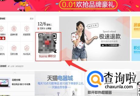 进入之后,用手机淘宝扫描图示位置二维码,玩游戏即可获得淘宝积分。
