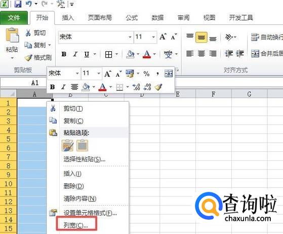 首先,我们打开我们电脑上面的excel,然后我们选中第一列,之后我们右击选择列宽;