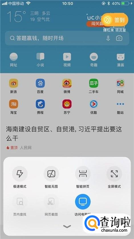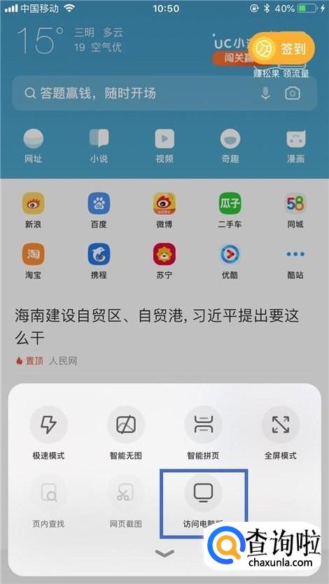 如下图,这样设置完成,我们就可以在UC浏览器上打开电脑网页了。