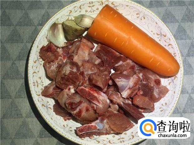 先把食材准备好,猪小排一根、红萝卜一根、姜蒜适量。