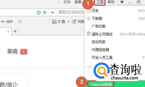 接下来依次点击“工具”-“Internet选项”,如今绝大多数浏览器都有这两项的;