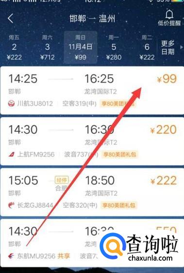 进入之后,选择特价机票,进入下一页面,如图所示。