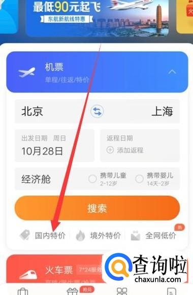 进入之后,点击“国内特价”,进入下一页面,如图所示。