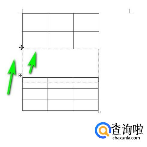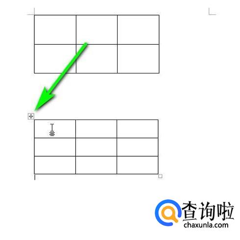 把鼠标放在这个图标上,点住鼠标,就可以直接把整个表格移动。那么,我们就把这个表格向上移,移到上面这个表格底下的这条边框线上,与之重叠在一起。