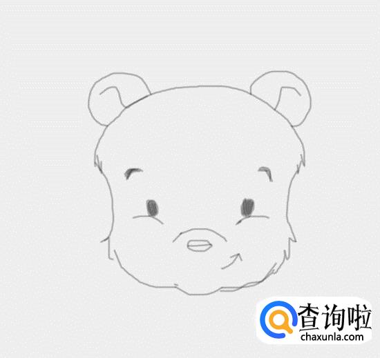 再在小熊的头部上面再画出小熊的两只弯弯的眉毛,如图所示: