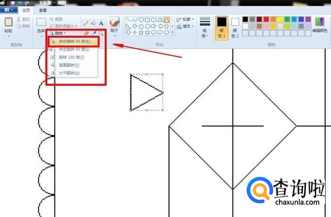 随后选择“三角形”图案,绘制出一个三角形,点击“旋转90度”