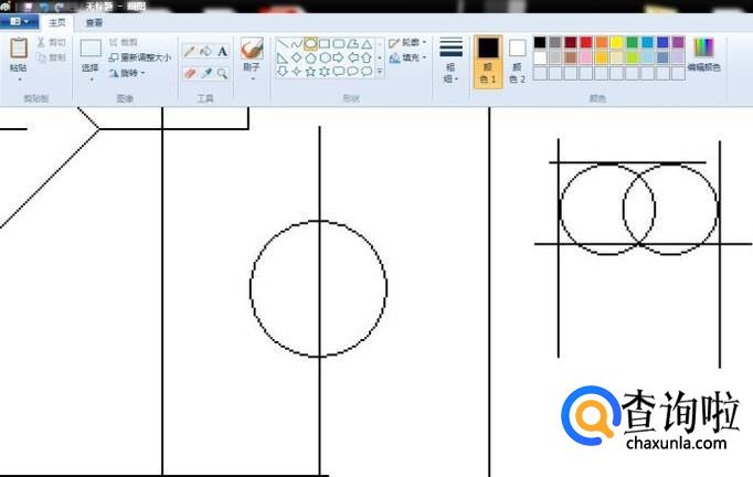 随后使用圆形图案绘制出两个重叠的圆,借助直线工具进行对齐