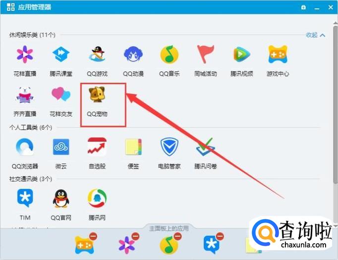 进入之后,找到“QQ宠物”,点击并进入,如图所示。