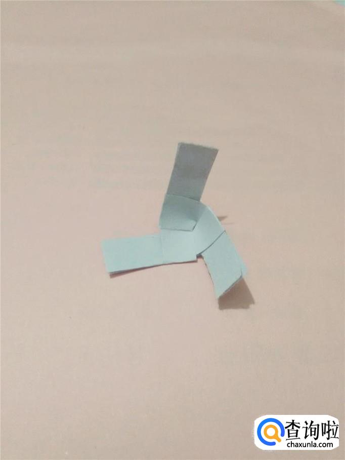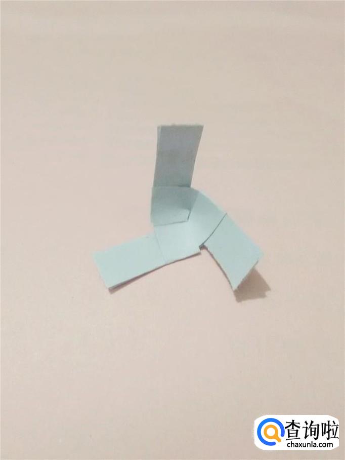 把三个纸条同时拉紧,就成了一个简易的三叶小风车。