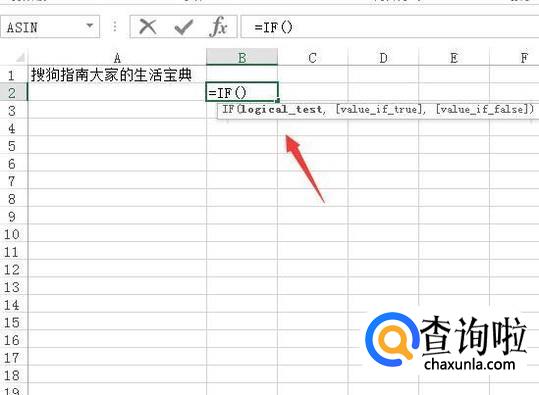 打开excel选择单元格,然后再在单元格输入文字,并在另选择一个单元格,在该单元格内输入我们的函数,如图所示: