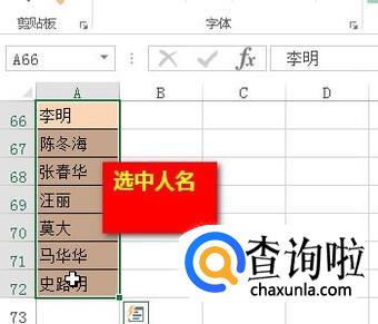 首先,把这些人名全选中。如下图所示,点击这个小按钮。