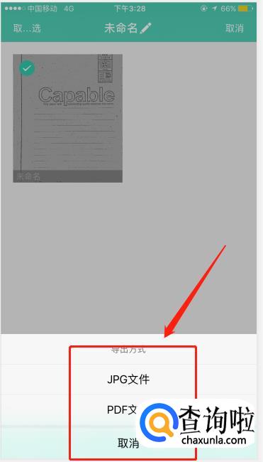 保存文件后,点击左上角的【选择】,就会出现分享的选择项,自己可以选择文件分享的方式。这里小编选择pdf格式,进行分享。
