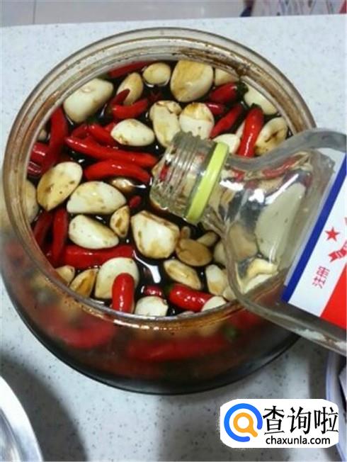 辣椒和葱姜蒜,以及花椒八角全部装进罐子里,加上一把冰糖,加上适当食盐,你要确定腌出来的辣椒有咸味,然后倒进去低度白酒盖上盖子,一个礼拜就可以吃了。