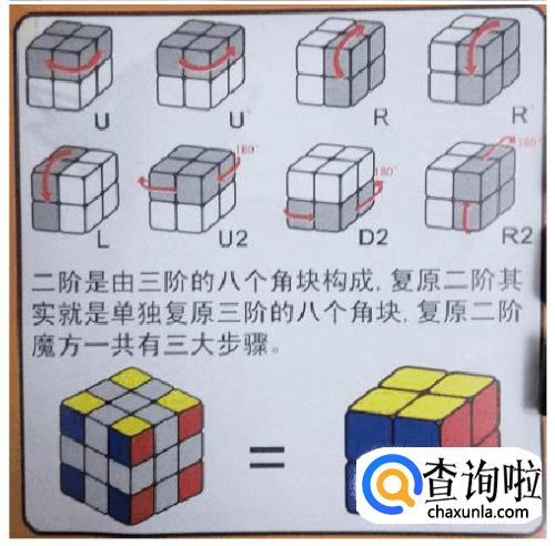 二阶是由三阶的八个角块构成,复原二阶其实就是单独复原三阶的八个角块,复原二阶魔方一共有三大步骤。