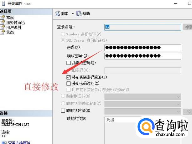 接下来在弹出的sa属性界面中我们直接修改里面的密码即可,如下图所示