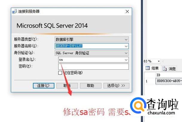 首先修改sa账号密码需要先登录sa的账号,因为sa的账号有管理员权限,如下图所示