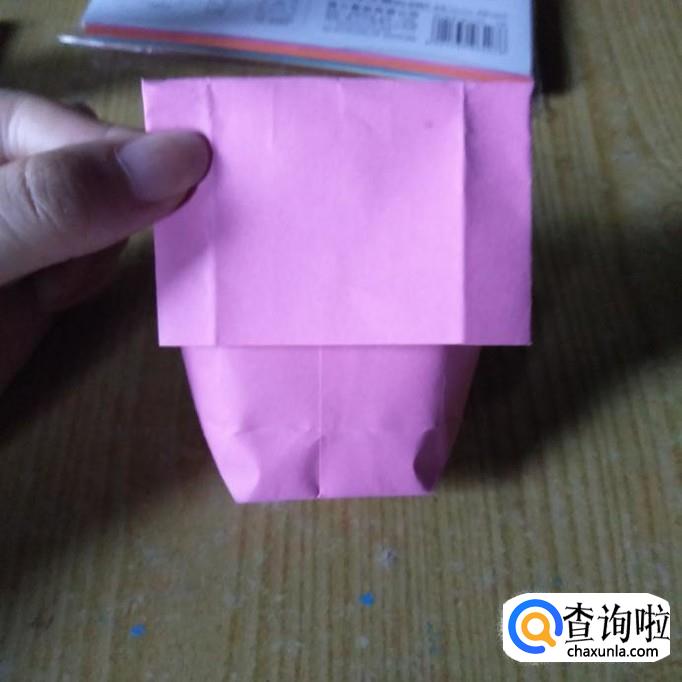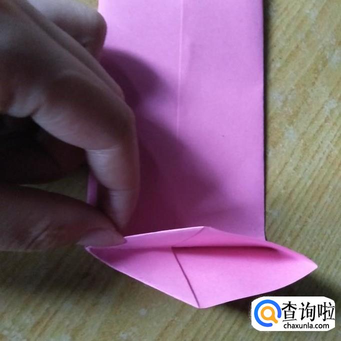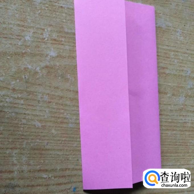 选择一张粉红色的纸,按如下图所示的方法对折。注意,两个责口之间要有一定的重叠部分,方便后续用胶水将其粘黏起来。