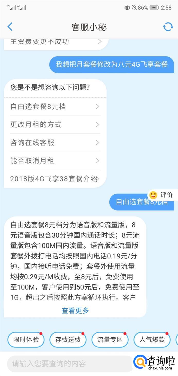 然后会看到有介绍八元套餐的详细内容,确定之后就更改完成啦。