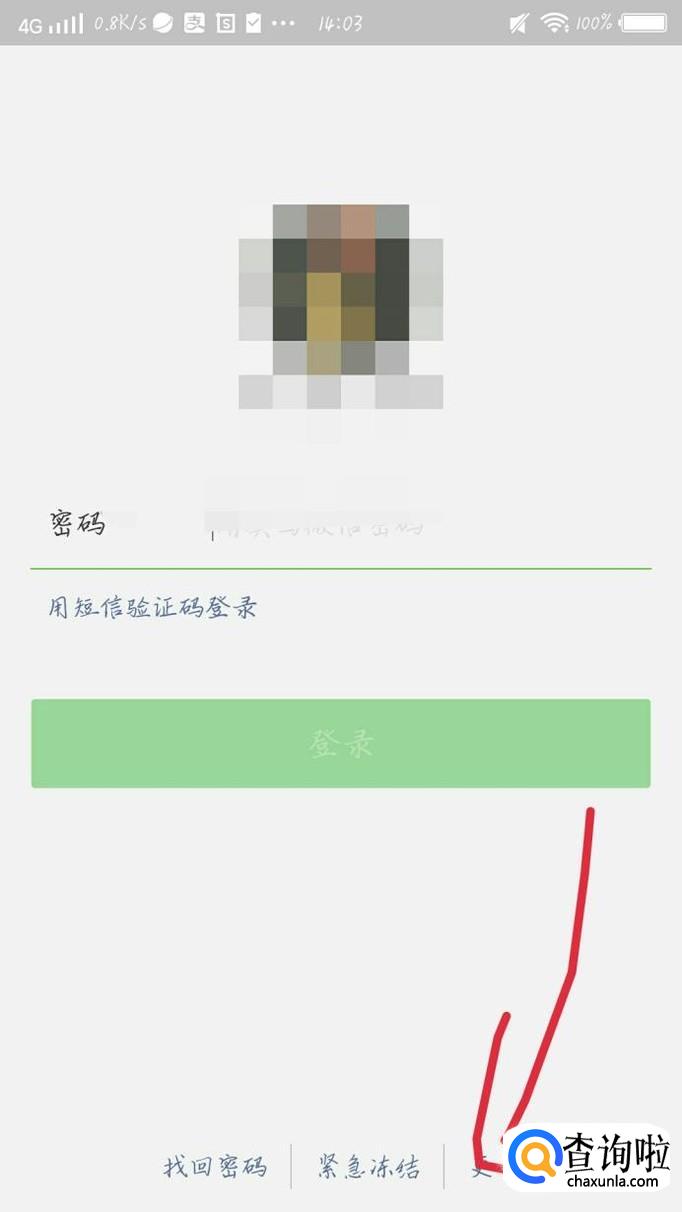 因为微信账号异常,所以登录不上去,点击“更多”选项,如图1箭头所示。会出现一个新的界面,如图2所示