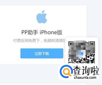 进入官网后,点击pp助手iphone版,就会出现一个下载二维码,我们拿出手机扫码下载